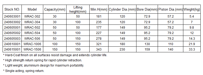 WRAC Single-acting Aluminum Cylinder
